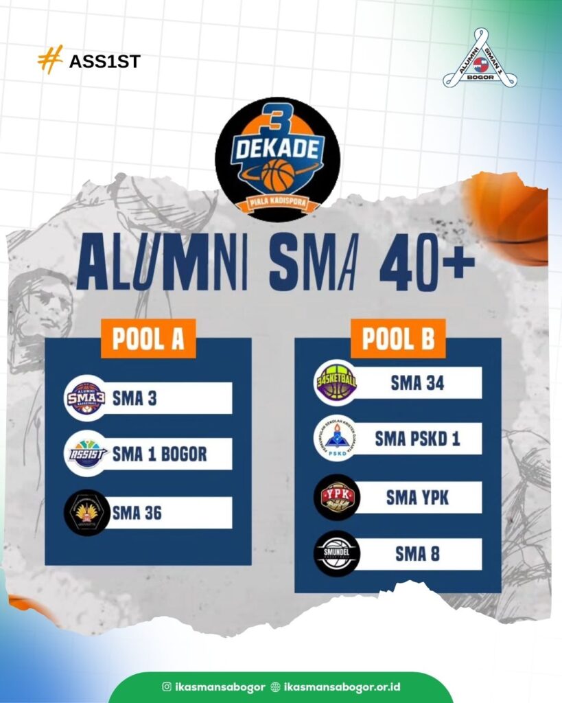 ASS1ST (tim bola basket Alumni Smansa Bogor) menjadi salah satu peserta yang mengikuti kompetisi ini untuk kelompok usia 40+
